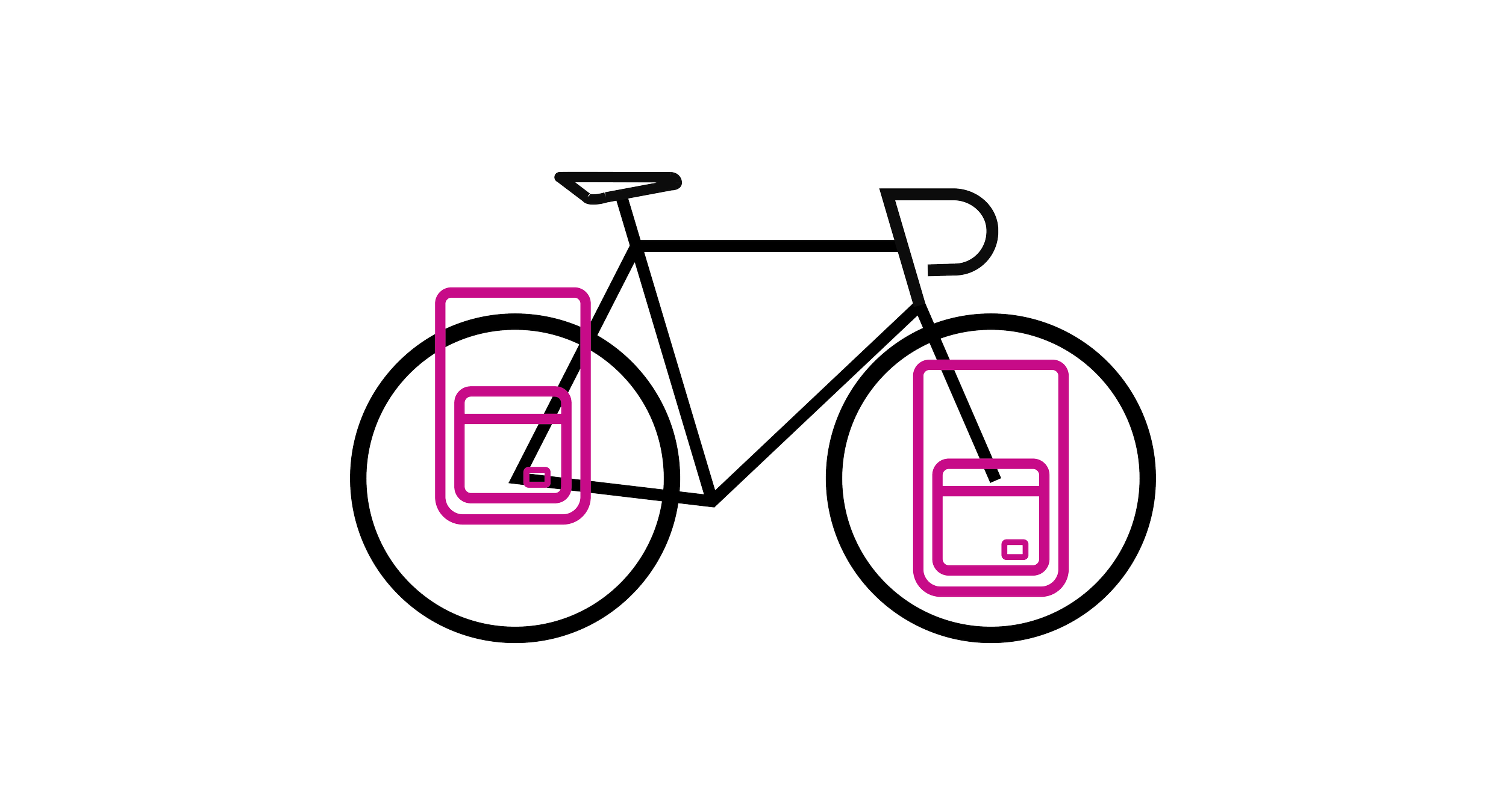 These simple illustrations were included on product hang tags, in collection catalogs and in sales decks to give a quick view of where the bags mount onto the bicycle.
