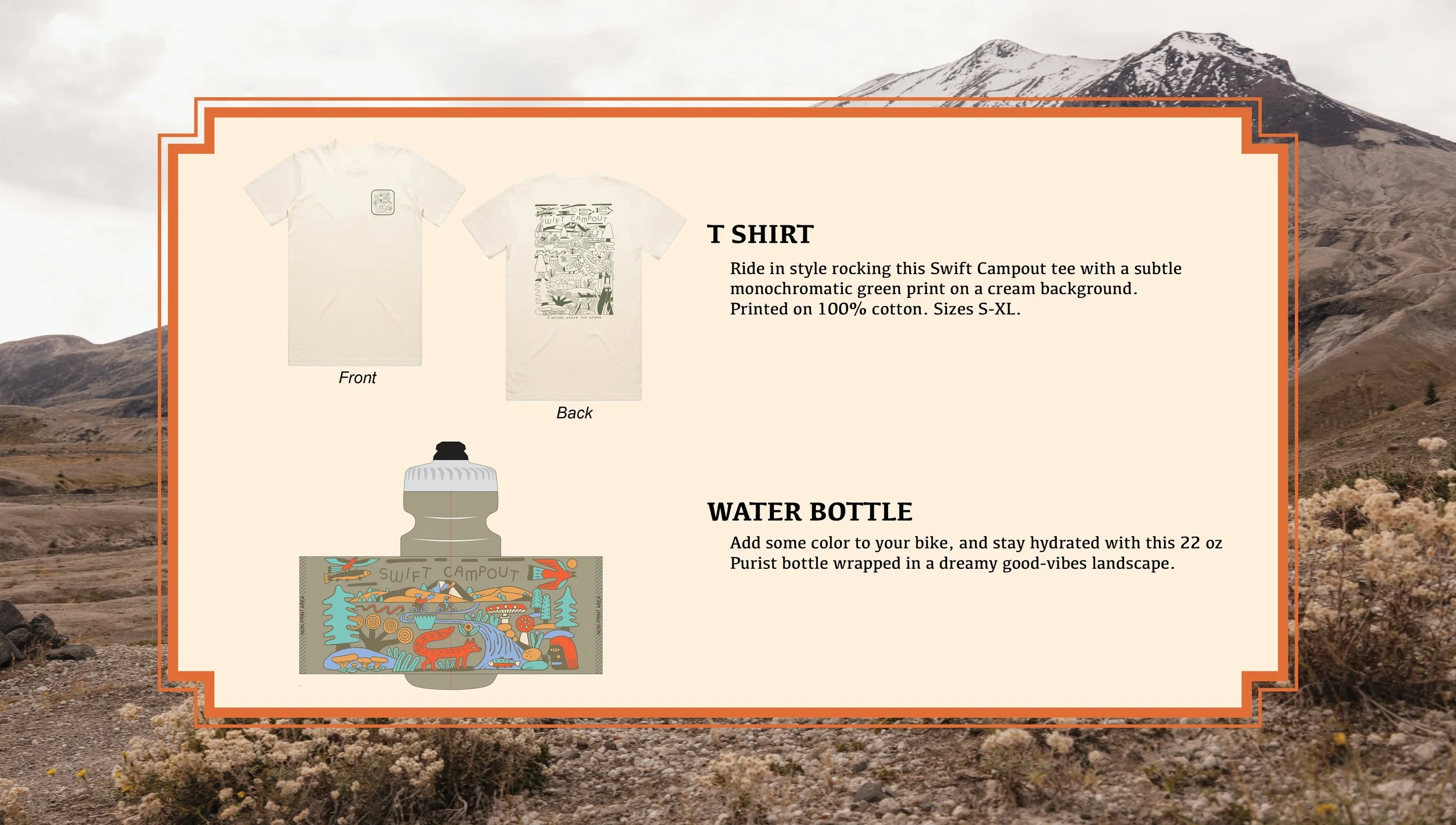 This catalog was sent out to all potential dealers in advance of the launch of the 2024 Swift Campout collection to entice them to buy into the collection and get excited about the event. It gives a quick snapshot into the artwork and products that would be released with the collection.